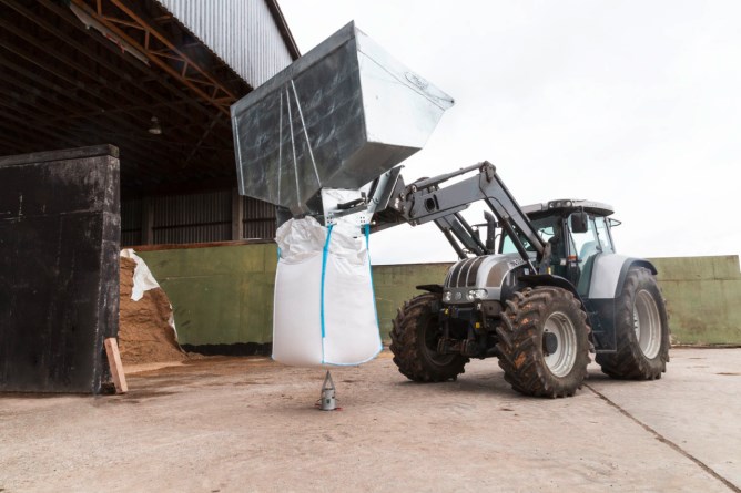 - Der BigBag muss lediglich auf die Auslaufhilfe gestellt werden