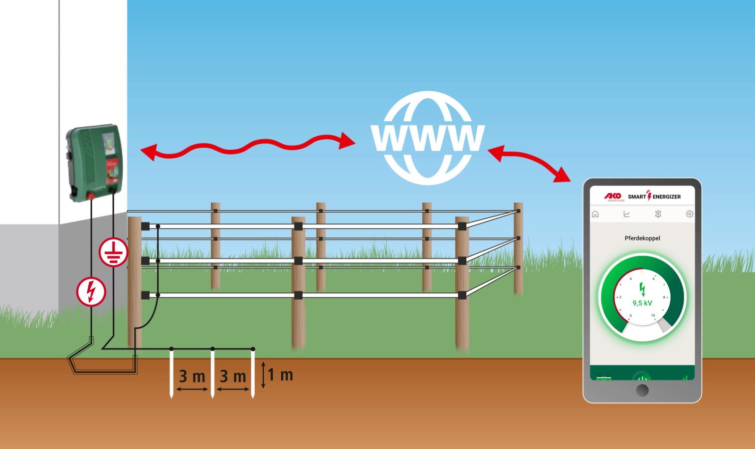 - distanzunabhängige Steuerung (EIN/AUS, GPS-Ortung) und Überwachung von Zaunanlagen per Smartphone