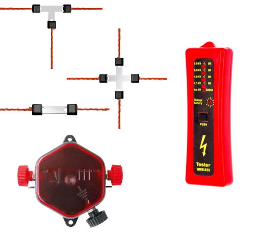 insbesondere zum Reparieren von Schaf-, Geflügel- und KaninchennetzenSet beinhaltet:4 x Litzenverbinder gerade 3 mm2 x Litzen-Kreuzverbinder 3 mm2 x Litzen-T-Verbinder 3 mm