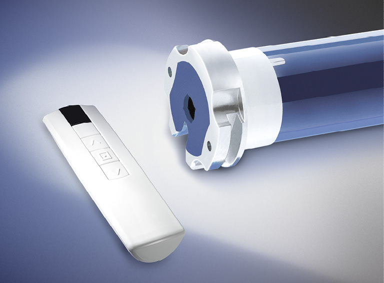 Antrieb wahlweise über einen Kurbelgetriebe mit abnehmbarer Handkurbel oder Funkmotor.
