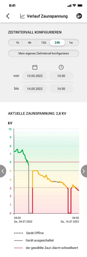 - bei Unterschreiten der voreingestellten Mindesthütespannung erhält der Nutzer eine Echtzeit-Alarmmeldung in der - kostenlosen App auf dem Smartphone
