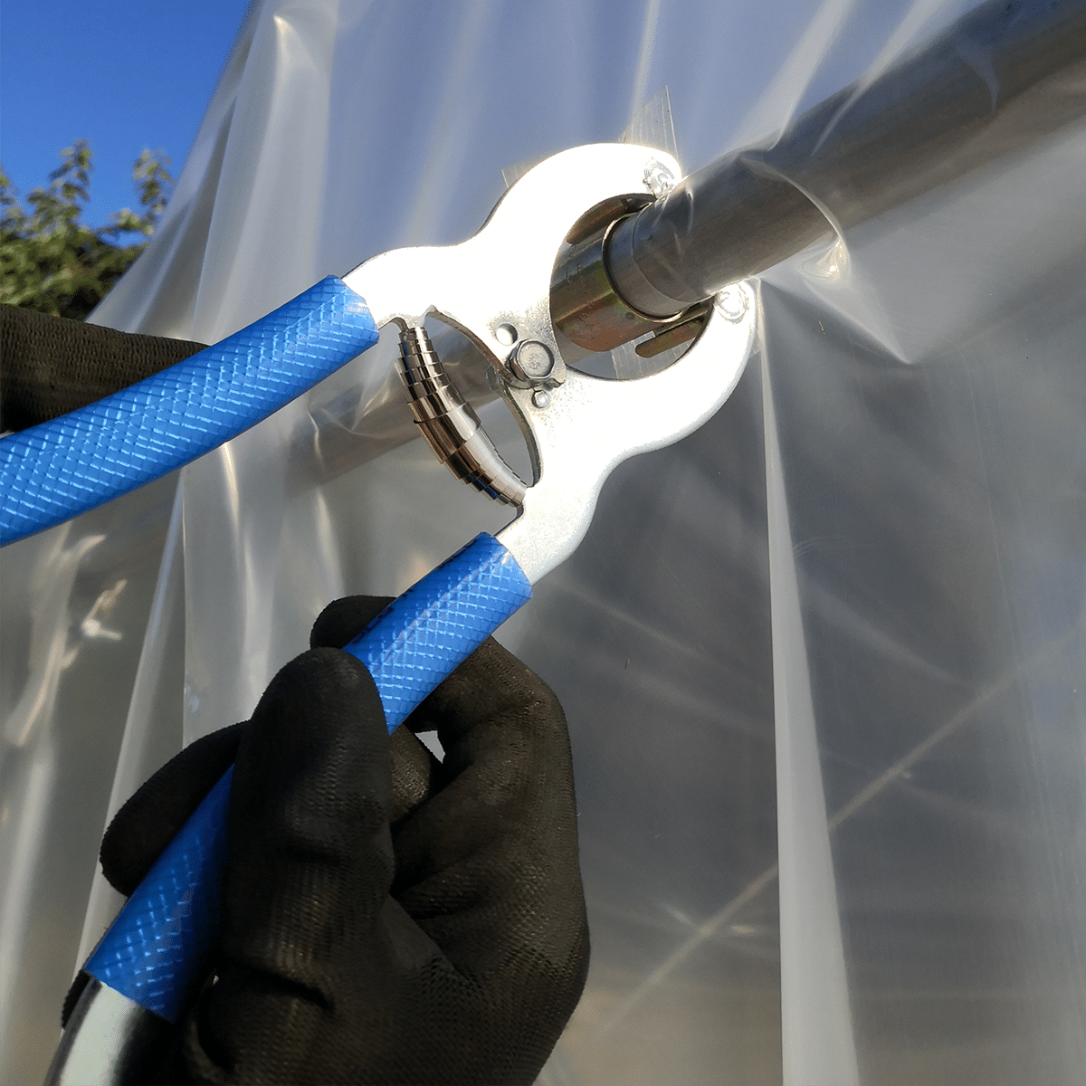 Die Zange ist für unsere FVG Ohr Clip entwickelt wurden. Dadurch können Sie die Clips kinderleicht aufspreizen und die Folie inkl. Schutzfolie am Stahlrohr befestigen. Auch ein mögliches versetzen der Clipse ist ohne Schädigung an der Folie möglich.
